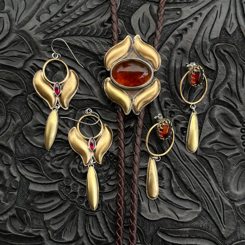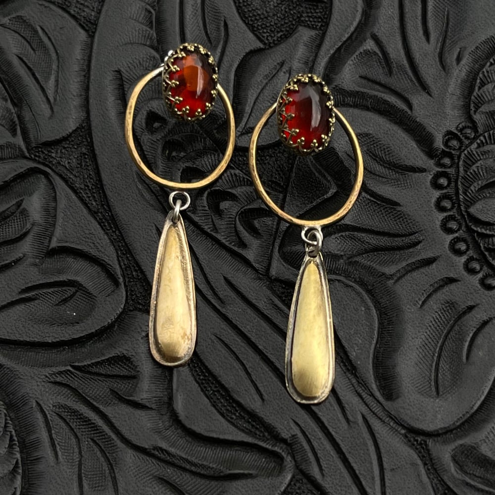 Amber and Brass Earrings