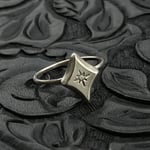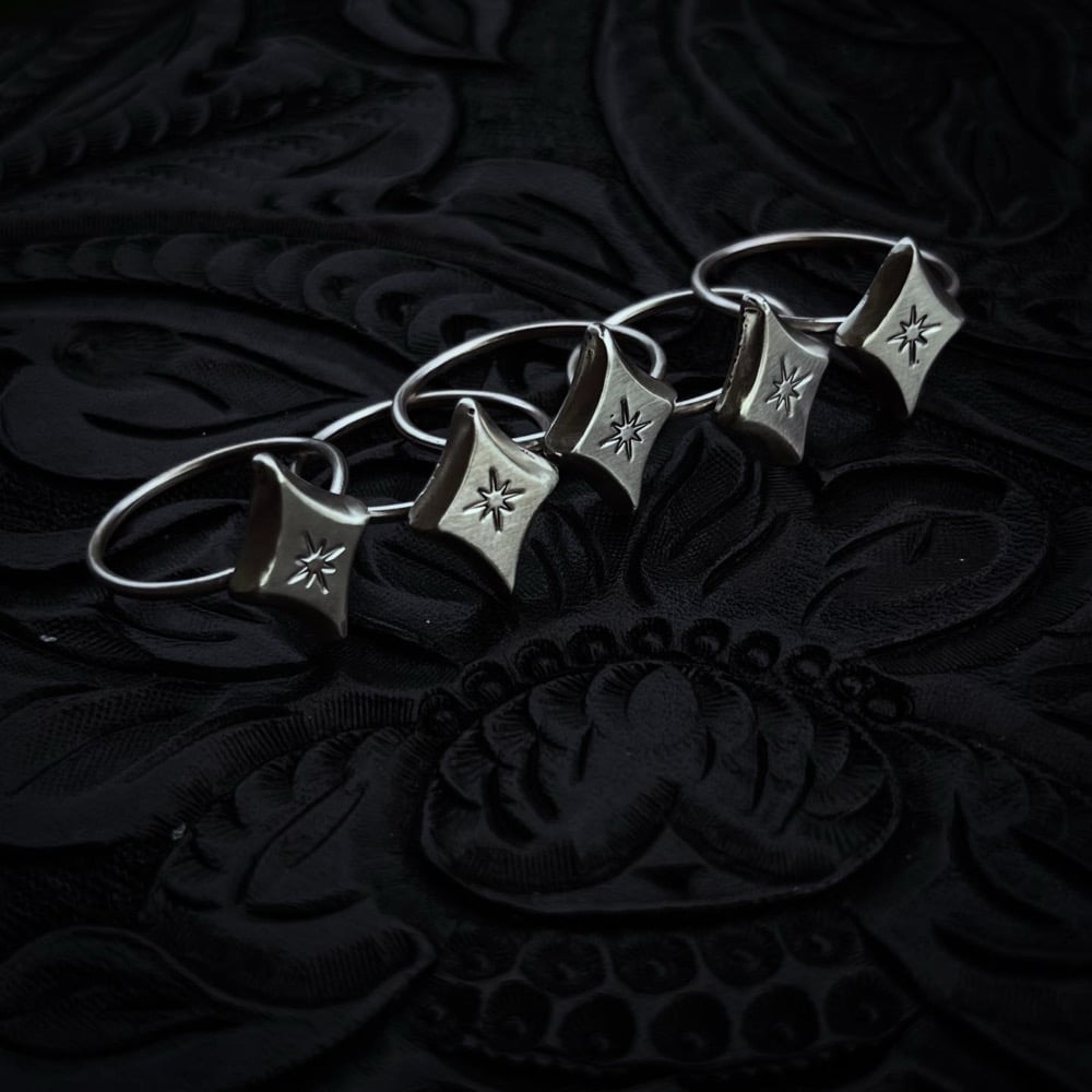 Sand cast sterling star with sturdy but thin sterling ring band.